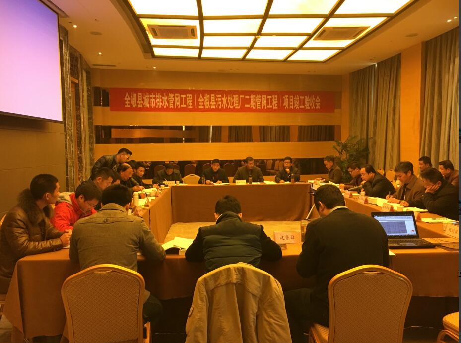 在隨后召開(kāi)的驗收會(huì )上,驗收組先后聽(tīng)取了建設單位、施工單位、監理單位、設計單位的匯報和相關(guān)驗收組成員客觀(guān)的點(diǎn)評,驗收組成員對全椒縣污水處理廠(chǎng)二期管網(wǎng)工程的工程質(zhì)量給予了充分的肯定和認可。經(jīng)充分討論,驗收組最終一致認為:全椒縣污水處理廠(chǎng)二期管網(wǎng)工程項目已按工程建設要求完成,工程質(zhì)量符合設計和規范要求,工程檔案資料齊全,同意通過(guò)工程竣工驗收。