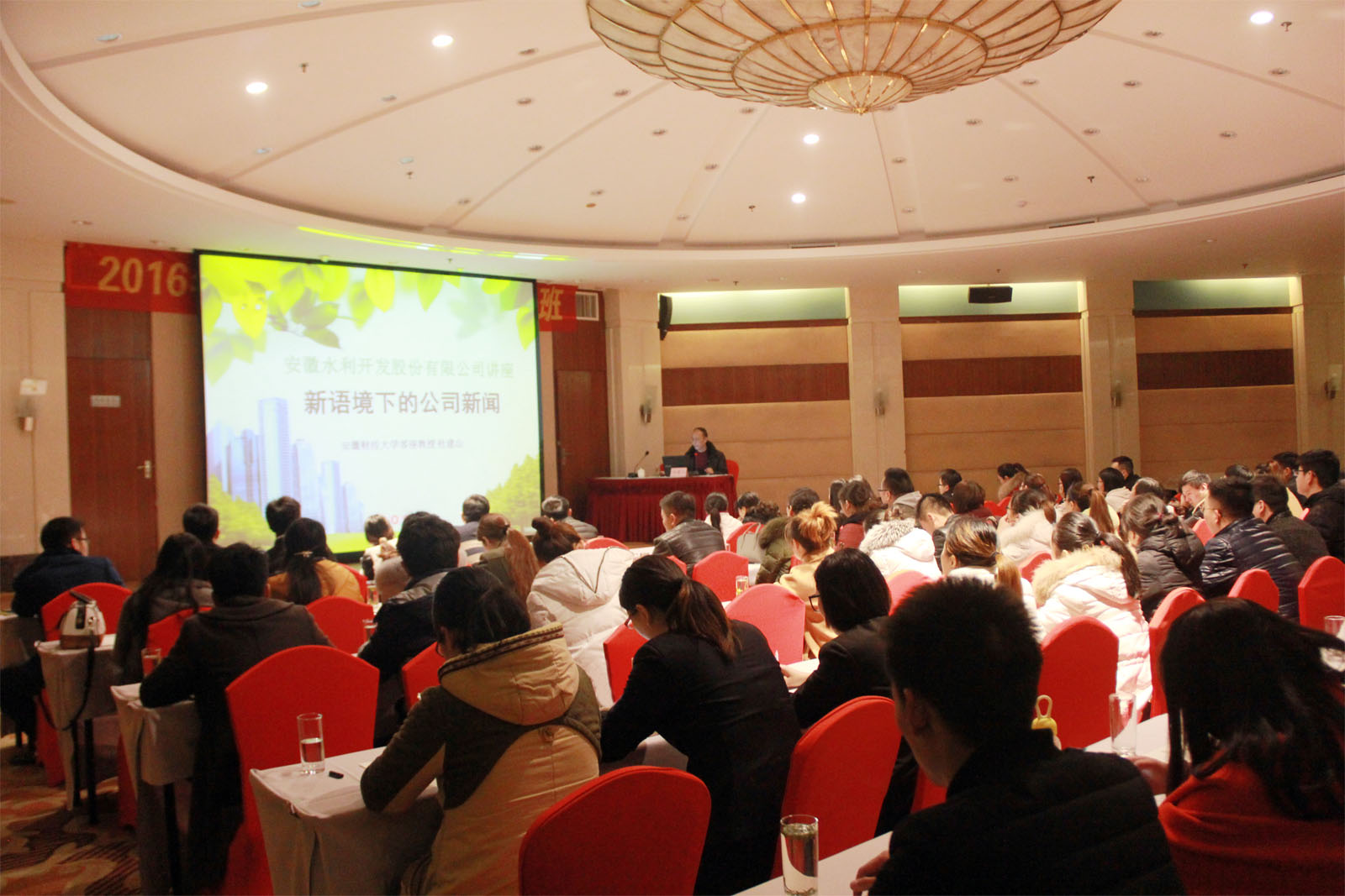 12月19日,安徽水利在和順大酒店(蚌埠店)舉辦了為期一天的2016年通訊員培訓班,來(lái)自公司所屬各單位、重點(diǎn)項目及機關(guān)各部門(mén)近80余名通訊員參加了此次培訓。安徽水利黨委副書(shū)記、紀委書(shū)記戴樹(shù)明,黨委工作部部長(cháng)高立久出席。