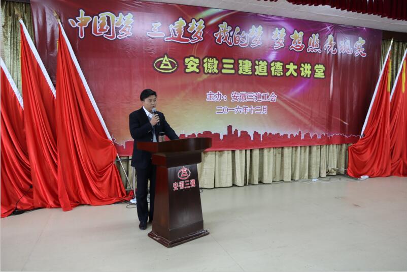 12月27日,安徽三建公司機關(guān)五樓會(huì )議室座無(wú)虛席,一場(chǎng)主題為“中國夢(mèng)、三建夢(mèng)、我的夢(mèng)”第三屆道德大講堂如期開(kāi)講。作為本場(chǎng)主講嘉賓,該司所屬一公司經(jīng)理李登祥結合個(gè)人成長(cháng)經(jīng)歷,從如何端正工作態(tài)度入手,用一場(chǎng)現身說(shuō)法似的演講,詮釋了當代三建人的職業(yè)道德和操守。來(lái)自基層單位的黨支部書(shū)記、工會(huì )主席、團支部書(shū)記及青年職工代表共180余人悉心聆聽(tīng)了他的心路歷程。安徽三建公司黨委副書(shū)記、紀委書(shū)記黃麗春出席大講堂并作了總結講話(huà)。
