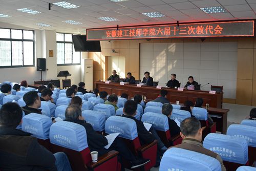 2017年1月14日下午,安徽建工技師學(xué)院六屆十三次教代會(huì )在學(xué)院教學(xué)樓錄播室召開(kāi),學(xué)院黨政領(lǐng)導、教職工代表和列席代表共46人參加會(huì )議。會(huì )議由紀委書(shū)記、工會(huì )主席吳良照同志主持。