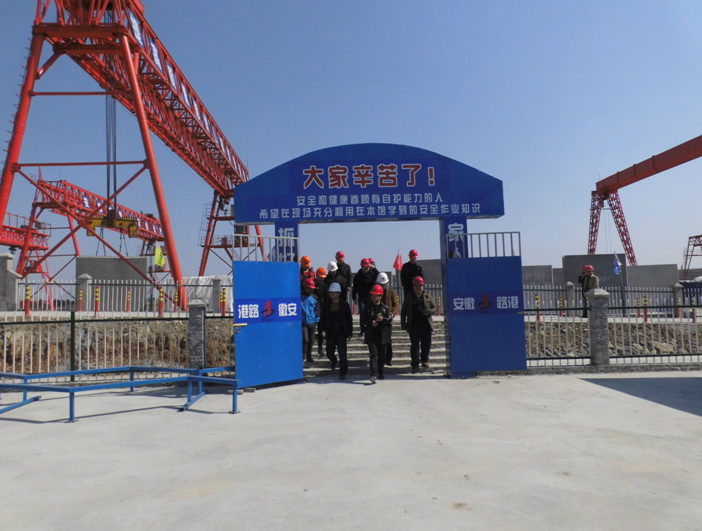 代表團一行先后參觀(guān)了項目預制場(chǎng)、鋼筋加工廠(chǎng)、混凝土拌合站、安全體驗館,合寧預制標項目負責人對各項工作的施工控制點(diǎn)、現場(chǎng)施工情況進(jìn)行了詳細介紹,并和大家在安全體驗館體驗了各項安全防護措施。
