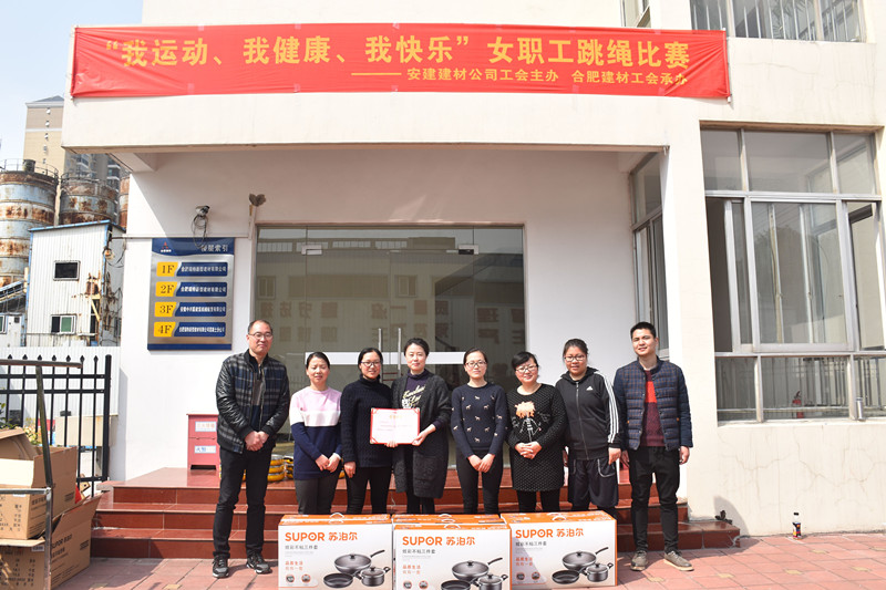 安建建材公司工會(huì )主辦,合肥建材工會(huì )承辦了“我運動(dòng)、我健康、我快樂(lè )”女職工跳繩比賽活動(dòng)。來(lái)自公司機關(guān)及各分子公司共6支代表隊50余名女職工參加比賽,提高女職工們運動(dòng)、健身的健康意識。