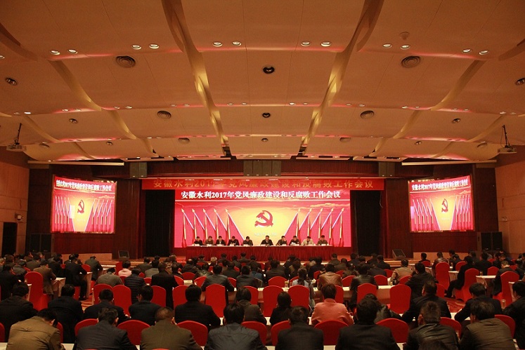 3月30日,安徽水利在蚌召開(kāi)了黨風(fēng)廉政建設和反腐敗工作會(huì )議,總結2016年黨風(fēng)廉政建設和反腐敗工作,立足當前的新形勢、新要求,對下一步工作進(jìn)行全面部署。安徽水利領(lǐng)導班子成員、機關(guān)部門(mén)副職以上人員、所屬單位班子成員、財務(wù)總監(財務(wù)經(jīng)理)、紀檢委員共200余人參加了會(huì )議。安徽水利黨委委員、副總經(jīng)理、董事會(huì )秘書(shū)趙作平主持會(huì )議。