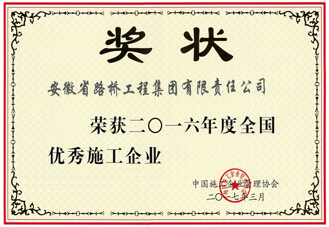 近日,中國施工企業(yè)管理協(xié)會(huì )在廈門(mén)召開(kāi)會(huì )議,公布了2016年度“全國優(yōu)秀施工企業(yè)”、“全國工程建設優(yōu)秀項目經(jīng)理” 評選結果,路橋集團榮獲2016年度“全國優(yōu)秀施工企業(yè)”,項目經(jīng)理呂慶廣榮獲“全國工程建設優(yōu)秀項目經(jīng)理”稱(chēng)號。