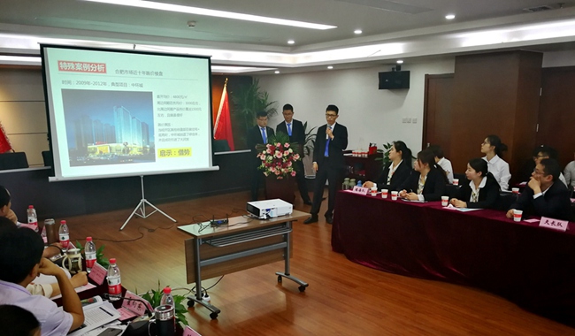 5月16日上午,安建地產(chǎn)“匠心杯”第一屆營(yíng)銷(xiāo)案例大賽在安建國際大廈21樓第三會(huì )議室順利舉行。公司在肥領(lǐng)導班子成員及相關(guān)部門(mén)負責人擔任此次比賽評委,來(lái)自公司機關(guān)和項目公司共6支團隊參加了比賽,公司機關(guān)全體員工觀(guān)看比賽。