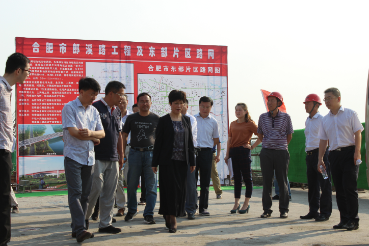 5月21日下午,合肥市市長(cháng)凌云在副市長(cháng)寧波、秘書(shū)長(cháng)柴修發(fā)等陪同下,赴安徽路港承建的郎溪路04標項目調研。