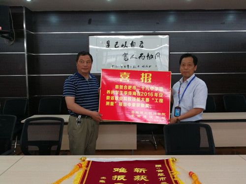 近日,學(xué)院紀委書(shū)記、工會(huì )主席吳良照;副院長(cháng)周元清親自帶領(lǐng)有關(guān)處室負責人和班主任把錦旗、喜報、獎品、獎金驅車(chē)奔赴蚌埠、巢湖、阜陽(yáng)、合肥等地街道,走村串戶(hù),將錦旗和喜報送到學(xué)生母校,將大獎送到學(xué)生家中,以表示學(xué)院對他們取得成績(jì)的熱烈祝賀。
