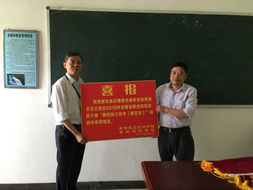 在獲獎學(xué)生母校,院領(lǐng)導親手把“斬獲技能大賽獎、難報母校培育恩”的錦旗送到校領(lǐng)導手中,以感謝對母校的培育之恩。在獲獎學(xué)生家中,院領(lǐng)導首先向學(xué)生家長(cháng)表示祝賀,并將獎品、獎金親手交到家長(cháng)手中。家長(cháng)接到獎品、獎金,高興的合不攏嘴,十分感謝學(xué)校和老師的精心培養,與院領(lǐng)導一起合影留念。宣傳彩車(chē)很快將喜訊傳遍整個(gè)街道、村莊,引得左鄰右舍紛紛前來(lái)觀(guān)看,大家十分好奇都紛紛上前詢(xún)問(wèn)。老師們與他們熱情的交談,介紹學(xué)生在國賽和省賽中取得的驕人佳績(jì)及獲獎的優(yōu)惠政策,獲得省級技能大賽三等獎以上的同學(xué)還可以免試讀本科。獲獎的同學(xué)受到了大家的連聲贊揚,并表示將再接再厲,爭取更好的成績(jì)。此次上門(mén)送獎品活動(dòng)給獲獎學(xué)生的母校和家庭增添了意外的喜悅和自豪,學(xué)生母校的領(lǐng)導和老師以及家長(cháng)和鄉親們分外熱情,連聲感謝我校的領(lǐng)導和老師?;顒?dòng)不僅鼓舞了學(xué)生、家長(cháng),也讓廣大群眾了解到,安徽建工技師學(xué)院為學(xué)生搭建了實(shí)現夢(mèng)想的平臺,讓望子成龍的家長(cháng)實(shí)現了愿望,家長(cháng)都認為安徽建工技師學(xué)院能學(xué)到實(shí)用技能、過(guò)硬本領(lǐng),是學(xué)生成人成才、成就夢(mèng)想的搖籃。