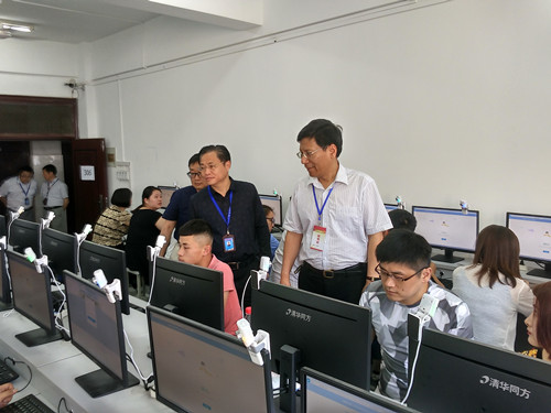 5月27日下午,安徽省建筑施工企業(yè)安管人員首批計算機考試試點(diǎn)第一場(chǎng)考試在我院舉行,省住建廳曹劍副廳長(cháng)、省住建廳質(zhì)量安全處王勝波處長(cháng)、安徽建工集團王厚良副總經(jīng)理、安徽省水安公司胡先林副總經(jīng)理等領(lǐng)導親臨我院巡察考試工作,學(xué)院副院長(cháng)任建設,紀委書(shū)記、工會(huì )主席吳良照陪同巡視。