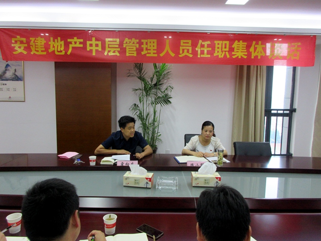 安建地產(chǎn)黨委書(shū)記、董事長(cháng)霍向東在總結中表示:新任職中層干部一要加強學(xué)習,提高素質(zhì),爭做“四強”干部;二要轉換角色,擺正位置,認真履行職責;三要注重修養,自重自律,樹(shù)立領(lǐng)導干部良好形象?;艨傔€帶領(lǐng)大家一起學(xué)習《黨章》,讓新履職中層管理人員牢記共產(chǎn)黨員的使命和職責,不忘初心,繼續在新的崗位上作出新成績(jì)。