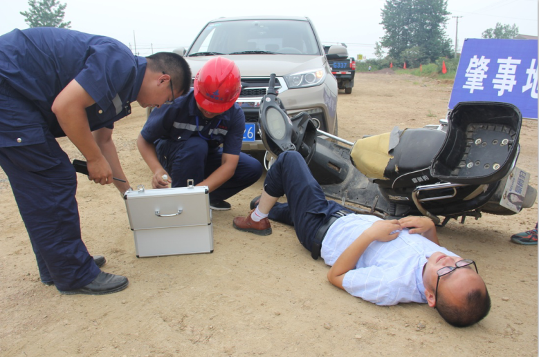 本次交通事故應急演練是模擬在052縣道與新建段交叉路口,項目部車(chē)輛與當地人員所騎行的電瓶車(chē)發(fā)展碰撞,導致電瓶車(chē)駕駛員受傷骨折,通過(guò)該項目部起動(dòng)應急預案展開(kāi)救援,各救援小組在項目部、工管部和公司以及與110、120的緊密聯(lián)合,成功搶險。此外,還開(kāi)展了安徽建工安全誓詞宣誓活動(dòng)和安全消防應急演練,旨在提高項目職工安全生產(chǎn)意識和火災應急救援能力?! ?SPAN lang=EN-US>