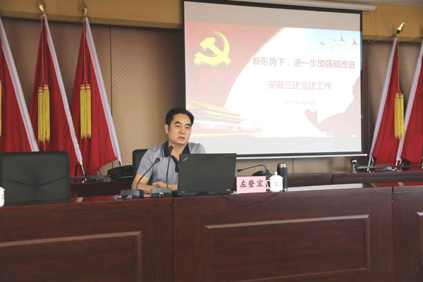 為進(jìn)一步推進(jìn)“兩學(xué)一做”學(xué)習教育常態(tài)化制度化,扎實(shí)推動(dòng)基層黨組織標準化建設,6月29日上午在建筑工業(yè)有限公司會(huì )議室,安徽三建公司黨委書(shū)記左登宏帶頭上黨課,為該司領(lǐng)導班子成員,外地分公司黨政負責人,合肥地區各單位黨員干部,公司機關(guān)中層副職以上黨員干部;項目黨支部負責人,工會(huì )、團組織負責人、政工干事及受表彰人員、宣誓的預備黨員等230多人上了一堂主題為“新形勢下,進(jìn)一步加強和改進(jìn)安徽三建黨建工作”的專(zhuān)題黨課。黨課由公司黨委副書(shū)記黃麗春主持。