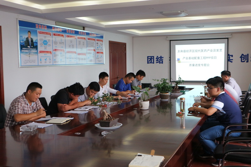 7月4日,太和縣安建投資有限公司召開(kāi)太和PPP項目管理工作專(zhuān)題會(huì )部署該項目下一階段工作。項目公司總經(jīng)理高偉,項目公司各部門(mén)主要負責人,安徽二建太和PPP項目經(jīng)理部及各工區負責人參加會(huì )議。會(huì )議由安建投資公司副總經(jīng)理、項目公司董事長(cháng)朱友良主持。