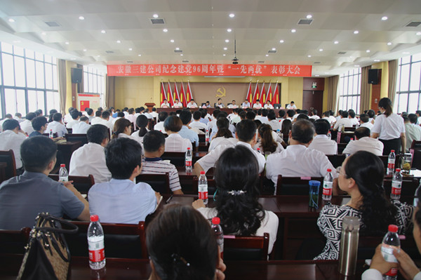在慶祝中國共產(chǎn)黨成立96周年之際,6月29日下午,安徽三建公司召開(kāi)了紀念建黨96周年暨“一先兩優(yōu)”表彰大會(huì )。該司領(lǐng)導班子成員,外地分公司黨政負責人,合肥地區各單位黨員干部,公司機關(guān)中層副職以上黨員干部;項目黨支部負責人,工會(huì )、團組織負責人、政工干事及受表彰人員、未宣誓的預備黨員等230多人參加了大會(huì )。大會(huì )由黨委副書(shū)記黃麗春主持。