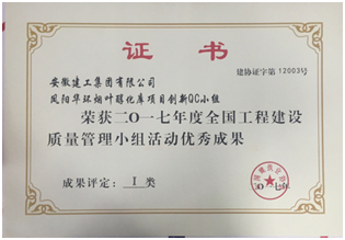 安建建設2017年度共獲得省級QC優(yōu)秀成果獎5項,國家級QC優(yōu)秀成果獎1項,QC小組活動(dòng)取得的成績(jì),體現了公司采取的技術(shù)質(zhì)量創(chuàng )新管理機制,大大激發(fā)了員工參與活動(dòng)的主觀(guān)能動(dòng)性,有效提高了對QC活動(dòng)成果的總結力度,更展現了我公司技術(shù)人員良好的精神風(fēng)貌。