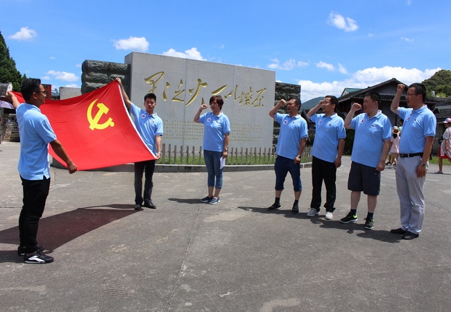 在主席園前,在鮮紅的黨旗下,面對“星星之火,可以燎原”的題詞,公司新入黨的4名黨員右拳高舉,莊嚴宣誓?!拔抑驹讣尤胫袊伯a(chǎn)黨,擁護黨的綱領(lǐng),遵守黨的章程,履行黨員義務(wù),執行黨的決定,嚴守黨的紀律,保守黨的秘密,對黨忠誠,積極工作,為共產(chǎn)主義奮斗終身,隨時(shí)準備為黨和人民犧牲一切,永不叛黨?!毙曼h員神情嚴肅認真,聲音鏗鏘有力。