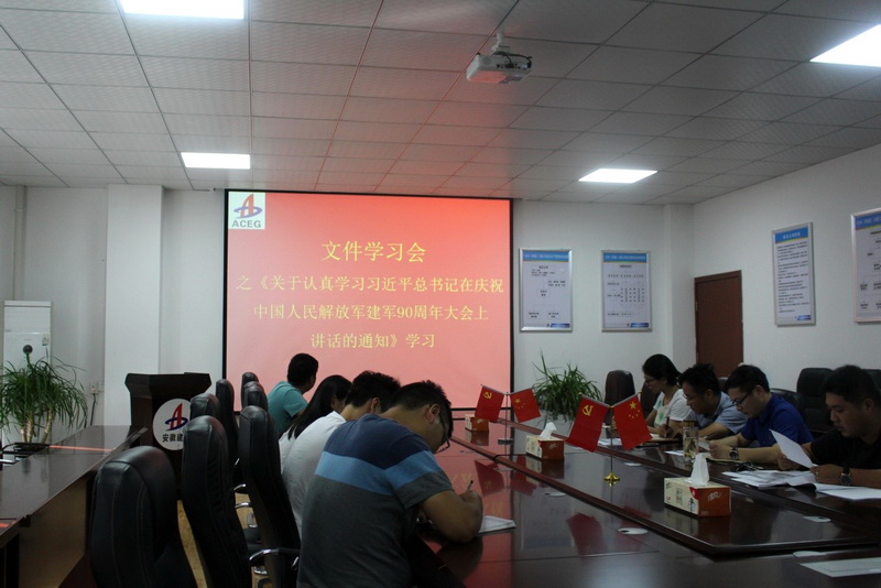 8月17日,舒城安建投資有限公司召開(kāi)會(huì )議,學(xué)習傳達了習近平總書(shū)記在慶祝中國人民解放軍建軍90周年大會(huì )上的講話(huà)及省委書(shū)記李錦斌在省委常委會(huì )會(huì )議暨省委議軍會(huì )上的講話(huà)精神。會(huì )議由公司董事長(cháng)、總經(jīng)理楊軍主持,公司全體員工參加學(xué)習。