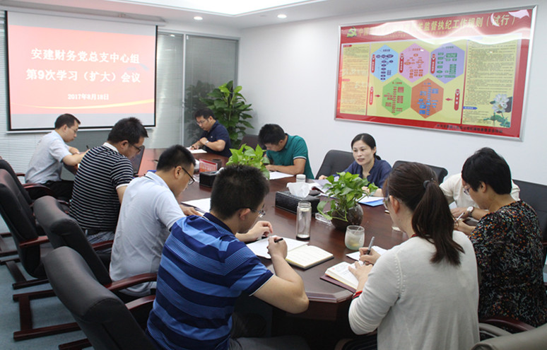 8月18日,安建財務(wù)公司召開(kāi)黨總支中心組學(xué)習(擴大)暨“重規矩,我們怎么做”專(zhuān)題研討會(huì )。會(huì )議由公司黨總支書(shū)記、副總經(jīng)理潘琳主持,副總經(jīng)理、紀檢委員于忠山出席會(huì )議。公司機關(guān)中層管理人員,保理、小貸公司領(lǐng)導班子成員及支部委員參加會(huì )議。