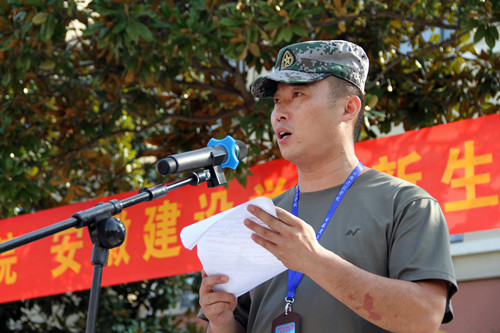 任建設副院長(cháng)作軍訓動(dòng)員講話(huà),他首先代表學(xué)院對2017級新同學(xué)表示熱烈歡迎,向全體軍事教官表示感謝,勉勵所有參訓同學(xué)要以振奮的精神狀態(tài),端正態(tài)度,接受軍訓的錘煉,高標準高質(zhì)量完成軍事訓練任務(wù)。在介紹學(xué)院近年來(lái)的改革發(fā)展成就后,他對全體軍事教官提出三點(diǎn)要求:一要明確責任,認真履行職責。要本著(zhù)對受訓學(xué)生負責、對學(xué)校、對工作負責的態(tài)度,明確帶訓任務(wù),認真履行好職責;二要科學(xué)組訓,用心抓好訓練。要嚴密組織、科學(xué)實(shí)訓,要大抓會(huì )操競賽、內務(wù)整理競賽,確保軍訓質(zhì)量;三要嚴守紀律,帶頭執行規定。嚴格遵守軍訓的規定,尊重軍訓學(xué)生,堅決不允許發(fā)生任何違規違紀現象。同時(shí),他還對參訓的全體同學(xué)提出四點(diǎn)希望:一是端正思想認識,自覺(jué)把軍訓作為提升自我素質(zhì)的一次良好機遇。自覺(jué)從思想上把自己當成一名“軍人”,時(shí)時(shí)、處處按照軍人標準嚴格要求自己;二是樹(shù)立吃苦意識,大力發(fā)揚軍人不怕苦、不怕累的精神。在軍訓過(guò)程中提高身體素質(zhì)和心理素質(zhì);三是強化服從意識,自覺(jué)做到服從命令,聽(tīng)從指揮,養成令行禁止、步調一致的良好作風(fēng);四是配合軍事教官工作,高質(zhì)量完成軍事訓練任務(wù)。