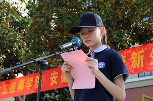 儀式上,軍事教官張宇代表全體教官發(fā)言,張教官說(shuō),為了圓滿(mǎn)讓同學(xué)們度過(guò)一個(gè)難忘的軍訓生活,全體教官都會(huì )全身心地投入到軍訓中去,力爭將軍人的文化、精神和傳統傳遞給每一名入學(xué)新生,堅決完成訓練任務(wù),共同達到我們此次軍訓目的。學(xué)生代表鄒瑩瑩同學(xué)代表2017級新生表達了戰勝困難、團結協(xié)作、圓滿(mǎn)完成軍訓任務(wù)的決心。