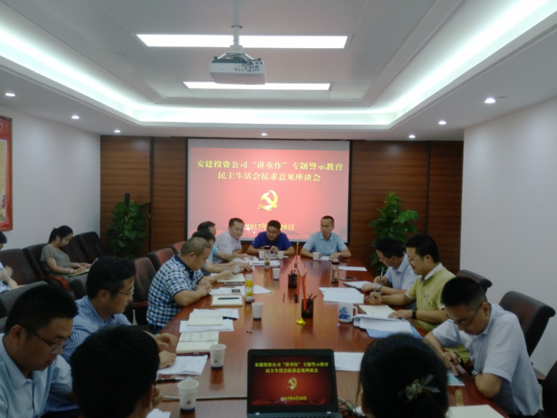 8月28日,安建投資公司召開(kāi)中心組理論學(xué)習(擴大)會(huì )暨“講政治、重規矩、作表率”警示教育專(zhuān)題民主生活會(huì )征求意見(jiàn)座談會(huì ),通過(guò)廣泛征求意見(jiàn),為安建投資黨總支民主生活會(huì )做好充分準備。會(huì )議由公司黨總支書(shū)記、副總經(jīng)理余志剛主持。公司黨總支委員、各項目公司負責人、所屬各支部書(shū)記、機關(guān)部門(mén)負責人及職工代表等相關(guān)人員參加了座談。