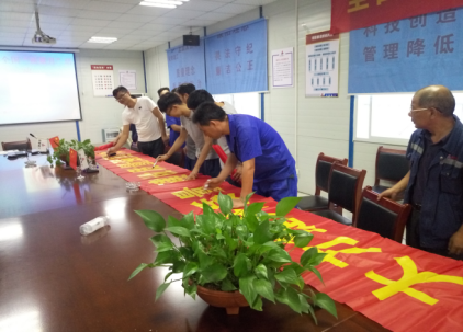 三是舉行“開(kāi)展質(zhì)量提升行動(dòng),建設質(zhì)量強國”的質(zhì)量簽名活動(dòng)。9月8日項目部印制了“開(kāi)展質(zhì)量提升行動(dòng),建設質(zhì)量強國”條幅,由項目部管理人員和勞務(wù)公司及專(zhuān)業(yè)分包單位管理人員在條幅上簽名,做到質(zhì)量管理全員參與、全員承諾。