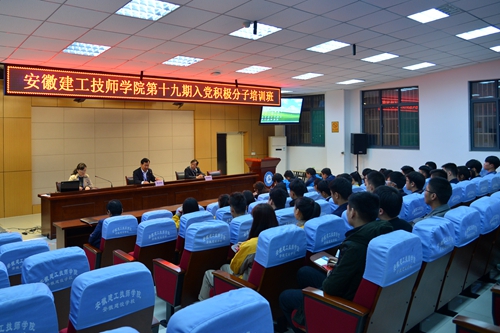 2017年11月6日,安徽建工技師學(xué)院業(yè)余黨校第十九期入黨積極分子培訓班在學(xué)院錄播室開(kāi)班。院黨委書(shū)記張衛東、紀委書(shū)記吳良照、紀檢監察室主任楊華陽(yáng)、離退休黨支部書(shū)記、院女工委主任李繼萍、院團委書(shū)記陳卓出席了開(kāi)班典禮。黨委工作部副主任沈曉云主持開(kāi)班儀式。