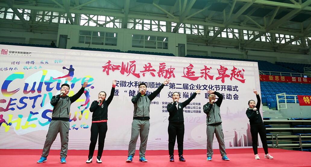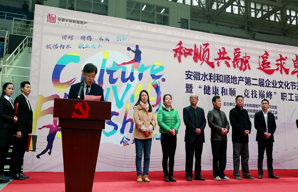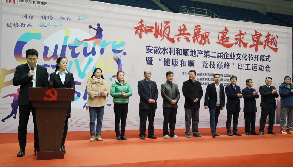 為深入學(xué)習貫徹黨的十九大精神,落實(shí)安徽水利企業(yè)文化動(dòng)員會(huì )精神,踐行“誠信為本、敬業(yè)至上”核心價(jià)值觀(guān),發(fā)揚“敬業(yè)、誠信、創(chuàng )新、拼搏”的企業(yè)精神,加強和順地產(chǎn)企業(yè)文化建設,豐富職工文化活動(dòng),在和順地產(chǎn)成立兩周年之際,安徽水利和順地產(chǎn)“和順共融、追求卓越”第二屆企業(yè)文化節開(kāi)幕式暨“健康和順 競技巔峰”職工運動(dòng)會(huì )于12月2日上午9時(shí)在龍湖體育館隆重開(kāi)幕。