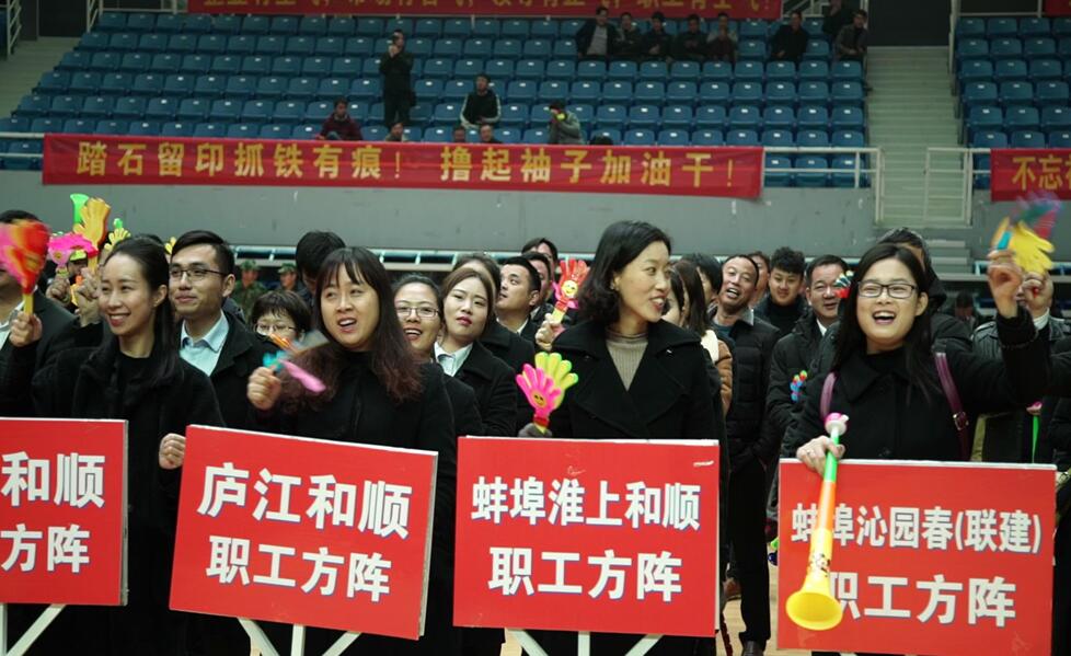 隨后,領(lǐng)導們走進(jìn)職工方陣,與廣大職工一起,觀(guān)看來(lái)自和順地產(chǎn)及聯(lián)建單位職工獻唱的激揚歌曲《We are ready》。來(lái)自和順地產(chǎn)機關(guān)、蚌埠沁園春、蚌埠名都城和蚌埠和順等單位組建的和順地產(chǎn)啦啦隊們,為在場(chǎng)觀(guān)眾舞動(dòng)青春,為運動(dòng)員加油,現場(chǎng)氣氛歡快活躍。