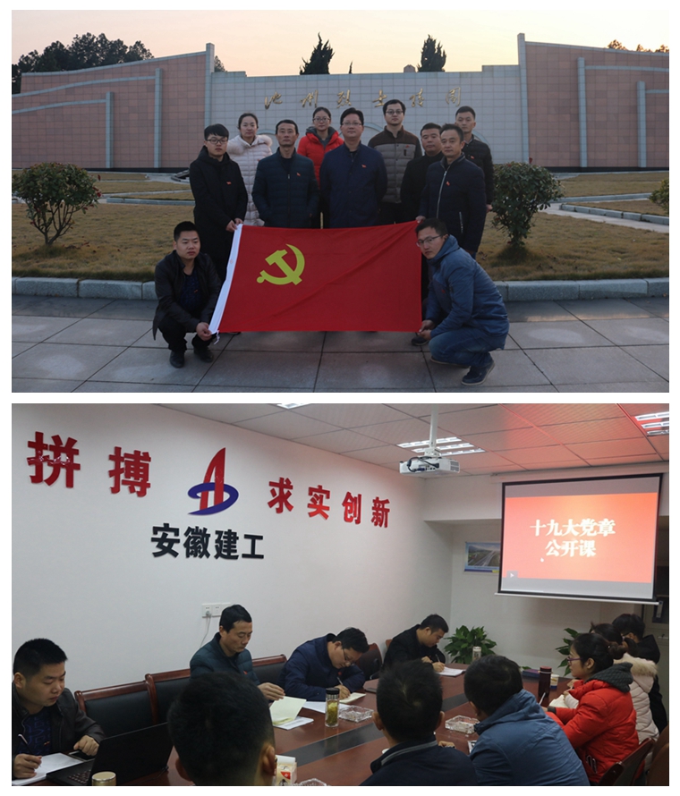 第一分公司于12月10日組織黨員同志開(kāi)展十九大專(zhuān)題學(xué)習活動(dòng)。第一分公司副經(jīng)理、黨支部副書(shū)記林虎帶領(lǐng)大家學(xué)習了十九大報告和新修訂的《中國共產(chǎn)黨章程》,觀(guān)看了視頻課件《十九大黨章公開(kāi)課》。會(huì )上大家結合各自學(xué)習情況進(jìn)行了座談交流。隨后,全體黨員來(lái)到池州革命烈士陵園參觀(guān)學(xué)習并重溫了入黨誓詞。