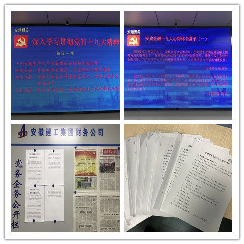 繼安建金融板塊積極參加集團公司黨委11月中旬舉辦的黨的十九大精神知識競賽后,安建財務(wù)黨總支又組織所屬各支部黨員開(kāi)展了黨的十九大知識測試和撰寫(xiě)學(xué)習心得活動(dòng),廣大黨員積極投稿,公司摘錄了部分黨員心得體會(huì )語(yǔ)句,在公司公共區域LED電子屏滾動(dòng)播放,在黨務(wù)公開(kāi)欄張貼,不斷激發(fā)黨員職工學(xué)習十九大精神的熱情和激情。此外,還利用公司LED電子屏開(kāi)展了深入學(xué)習貫徹黨的十九大精神“每日一學(xué)”活動(dòng),做到每個(gè)工作日更新宣傳黨的十九大精神中的關(guān)鍵知識點(diǎn),引導廣大黨員原原本本、原汁原味地學(xué)深悟透,真正讓黨的十九大精神入腦入心。