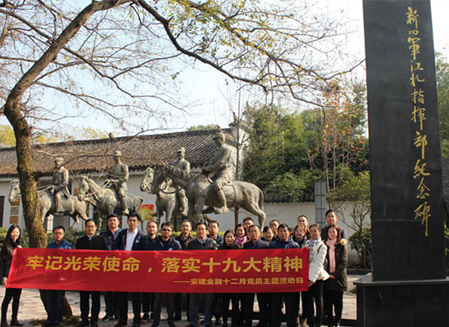 12月7日,安建財務(wù)黨總支組織開(kāi)展“牢記光榮使命,落實(shí)十九大精神”主題黨員活動(dòng)日活動(dòng),安建財務(wù)機關(guān)黨支部、保理黨支部、小貸黨支部的30多名黨員參加了此次活動(dòng)。大家參觀(guān)了位于巢湖的新四軍江北指揮部舊址,回顧革命歷程,緬懷革命先烈,接受革命傳統教育。