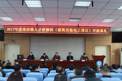 1月10日上午,在學(xué)院錄播室舉行了“安徽建工技師學(xué)院第一屆企業(yè)高技能人才研修班(建筑安裝電工項目)”開(kāi)班儀式。省人力資源與社會(huì )保障廳職業(yè)能力處副處長(cháng)陳德寶,安徽建工技師學(xué)院黨委書(shū)記、院長(cháng)張衛東,黨委委員、副院長(cháng)任建設及相關(guān)部門(mén)負責人出席了會(huì )議。