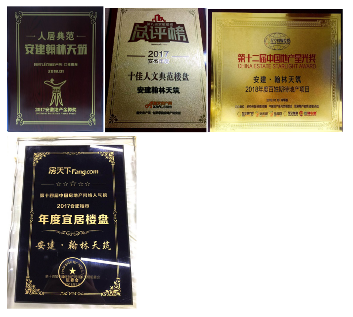 近日,安徽各房地產(chǎn)頒獎盛宴相繼舉辦,安建地產(chǎn)·翰林天筑項目憑借強大的品牌影響力和發(fā)展潛力,共榮獲第九屆安徽樓市總評榜“十佳人文典范樓盤(pán)”、2017安徽地產(chǎn)金樽獎“人居典范”、第十二屆中國地產(chǎn)星光獎“2018年度百姓期待地產(chǎn)項目”、第十四屆房地產(chǎn)網(wǎng)絡(luò )人氣榜“2017合肥樓市年度宜居樓盤(pán)”四項大獎。