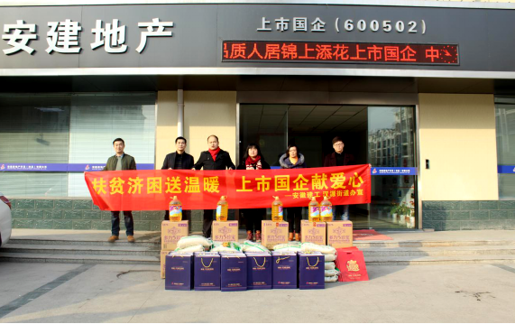 為積極落實(shí)十九大“精準扶貧、精準脫貧”理念,大力弘揚“奉獻、友愛(ài)、互助、進(jìn)步”的國企志愿服務(wù)精神,1月30日,安建地產(chǎn)沛縣公司聯(lián)合沛縣漢源街道辦組織開(kāi)展“扶貧濟困送溫暖 責任國企獻愛(ài)心”新春慰問(wèn)活動(dòng)。