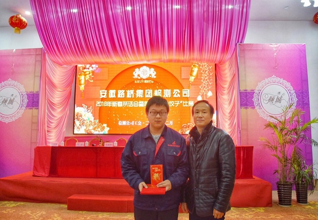 活動(dòng)現場(chǎng),安徽路橋集團黨委書(shū)記、董事長(cháng)、總經(jīng)理盛明宏對檢測公司順利舉辦第二屆“包餃子”比賽活動(dòng)表示祝賀!肯定了檢測公司2017年取得的成績(jì),同時(shí)希望檢測公司2018年實(shí)現既定目標?!俺晒](méi)有奇跡,成功只有軌跡”,希望檢測公司朝著(zhù)“名副其實(shí)、譽(yù)滿(mǎn)江淮”的方向奮斗,2018年會(huì )更好!