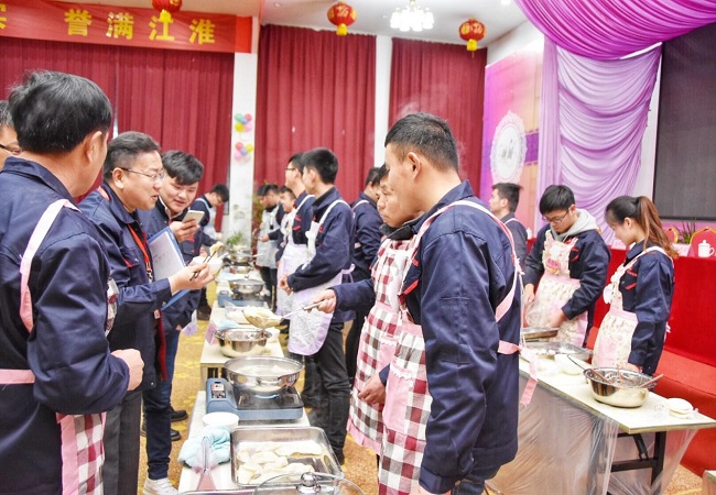本次“包餃子”比賽由檢測公司各項目試驗室選拔人員組隊參賽,比賽分為個(gè)人賽和團體賽,共九支代表隊27人參賽。裁判組根據參賽選手包餃子數量、質(zhì)量、大小均勻度、美觀(guān)程度、煮后餃子的口感等進(jìn)行綜合評判。