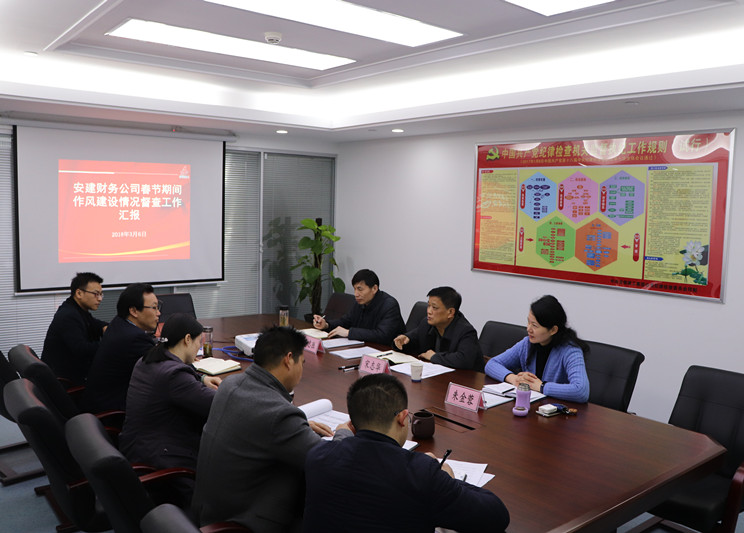 3月6日,集團公司黨委委員、紀委書(shū)記宋志華一行蒞臨安建財務(wù)督查公司春節期間作風(fēng)建設工作情況。集團公司人力資源部副主任朱金蓉,黨委工作部主管章志勝陪同。安建財務(wù)公司領(lǐng)導班子成員及黨群工作部、綜合事務(wù)部相關(guān)人員參加會(huì )議。