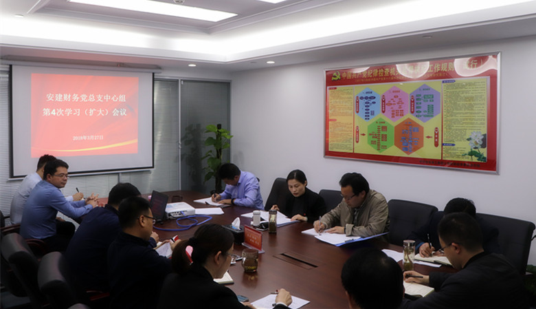 3月27日下午,安建財務(wù)公司召開(kāi)中心組學(xué)習(擴大)會(huì )專(zhuān)題組織學(xué)習黨的十九大精神。會(huì )議由黨總支書(shū)記、副總經(jīng)理潘琳主持,公司領(lǐng)導班子成員,財務(wù)公司各部門(mén)負責人;所屬各黨支部書(shū)記、支部委員等相關(guān)人員參加了會(huì )議。