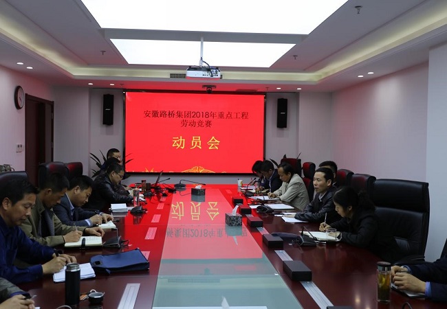 3月27日下午,安徽路橋集團“2018年度重點(diǎn)工程勞動(dòng)競賽動(dòng)員會(huì )”在公司九樓會(huì )議室召開(kāi)。公司黨委書(shū)記、董事長(cháng)、總經(jīng)理盛明宏,黨委委員、紀委書(shū)記、工會(huì )主席王勝利,黨委委員、總工程師王潔,機關(guān)各部門(mén)主要負責人以及分子公司黨政負責人、工會(huì )主席等20余人參加動(dòng)員會(huì )。會(huì )議由紀委書(shū)記、工會(huì )主席王勝利主持。