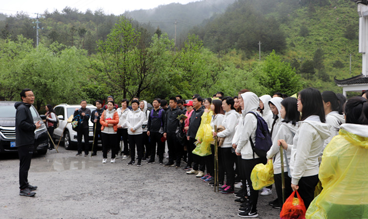 14日上午9點(diǎn),大家集聚在江南第一關(guān)——徽杭古道績(jì)溪段的出發(fā)點(diǎn),安建財務(wù)總經(jīng)理李有貴作了動(dòng)員講話(huà)。在徒步活動(dòng)中,隊員們頂著(zhù)雨水,背著(zhù)包袱,沿著(zhù)先人的足跡,跨入深山叢林,踩著(zhù)嶺峋亂石,趟過(guò)潺潺溪流,攀登陡峭山峰,切身感受徽商的創(chuàng )業(yè)、創(chuàng )新、競爭、誠信精神,充分展示了安徽建工人“特別能吃苦、特別能戰斗”的可貴品質(zhì);在翻越陡坡過(guò)程中,大家互相攙扶,齊心協(xié)力,以眾幫眾,最終全員勝利到達指定地點(diǎn)。