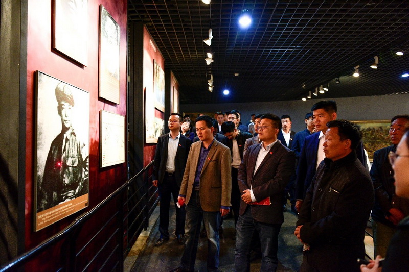 在淮海戰役紀念館內,大家對淮海戰役總體情況進(jìn)行了詳細了解。參觀(guān)過(guò)程中,根據戰役三個(gè)階段的決策部署和執行情況,認真分析了兵力、裝備、民心等方面資源情況,大家通過(guò)熱烈討論,一致認為中國共產(chǎn)黨的統一領(lǐng)導和軍民團結是淮海戰役的制勝法寶,撫今追昔,中國人民解放軍的英雄氣概仍歷歷在目,深切地感受到人民戰爭的偉大!在淮海戰役總前委群雕前,全體黨員深切緬懷劉伯承、陳毅、鄧小平、粟裕、譚震林5位革命先烈。在余志剛的帶領(lǐng)下,全體黨員舉起右拳,以堅定有力的聲音重溫了入黨誓詞。錚錚誓言久久回蕩,表達了大家不忘初心、牢記使命的堅定政治信念,為黨和國家事業(yè)矢志不渝、奮斗終身的決心。