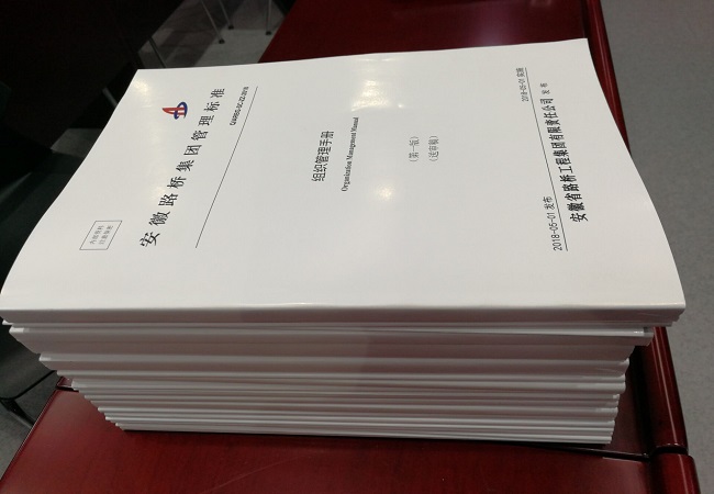 安徽路橋集團標準化管理體系以規范管理為中心,堅持專(zhuān)業(yè)化管理,堅持經(jīng)理責任制,做到組織標準化、流程標準化、表單標準化。整個(gè)管理體系包括“制度、辦法、手冊”三個(gè)層級,涵蓋從公司總部到項目部各層面。下一步,公司會(huì )把標準化成果運用到信息化建中,通過(guò)信息化固化流程、表單,在運行過(guò)程中不斷優(yōu)化管理體系。