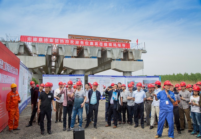 20日下午2:00,與會(huì )專(zhuān)家學(xué)者及代表一行乘車(chē)前往安徽路橋集團合安改擴建01標中派河大橋施工現場(chǎng)觀(guān)摩。公司領(lǐng)導班子、工程管理部、總師室、設計院、合安改擴建01標項目接待了觀(guān)摩團一行。項目負責人向觀(guān)摩團詳細介紹了中派河大橋設計理念、施工重難點(diǎn)、施工工藝、科技創(chuàng )新、安全質(zhì)量管理等內容。觀(guān)摩團在參觀(guān)完施工現場(chǎng)后,對于中派河大橋的施工及我公司管理水平給予高度評價(jià)。