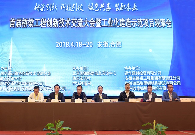 4月19日上午8:30,由中國交通運輸協(xié)會(huì )新技術(shù)促進(jìn)分會(huì )聯(lián)合安徽省公路學(xué)會(huì )等四家單位共同主辦,安徽省路橋工程集團有限責任公司等單位協(xié)辦,北京國鐵路網(wǎng)信息咨詢(xún)中心、路訊雜志社、中華鐵道網(wǎng)承辦的“首屆橋梁工程創(chuàng )新技術(shù)交流大會(huì )暨工業(yè)化建造示范項目觀(guān)摩會(huì )”在合肥隆重開(kāi)幕。
