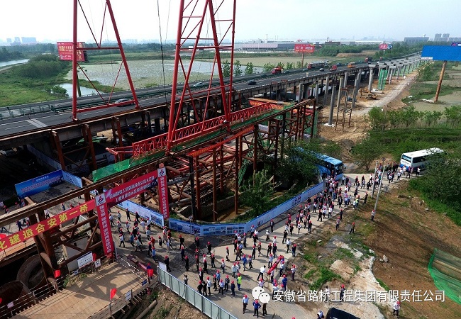 據了解,合安改擴建01標中派河大橋是國內首個(gè)裝配式T型橋墩及大直徑樁墩一體化技術(shù)項目,也是安徽省工業(yè)化建造示范項目。大橋全長(cháng)1846米(不含橋臺),共有147根預制墩柱和147個(gè)現澆承臺,每個(gè)橋墩共3組,北引橋75根,南引橋72根。預制墩柱設計采用空心薄壁高強墩,樁下部設置凹槽,以便和承臺連接,引橋設計墩高4-14.5米。主橋安裝由兩臺80t龍門(mén)吊機和一臺20t龍門(mén)吊機現場(chǎng)從邊跨向中間對稱(chēng)安裝,最終在跨中合攏。中派河大橋施工采用了BIM技術(shù)、大直徑樁基施工、裝配式橋梁施工技術(shù)、主橋鋼橋面12mm超薄層鋪裝、瀝青RAP熱再生利用、改進(jìn)型箱梁混凝土養護系統等多項新技術(shù),科技含量頗高。項目建成后,安徽南北“大動(dòng)脈”將更加暢通,對于完善區域路網(wǎng)結構、承接產(chǎn)業(yè)轉移、促進(jìn)經(jīng)濟社會(huì )發(fā)展具有重要的意義。