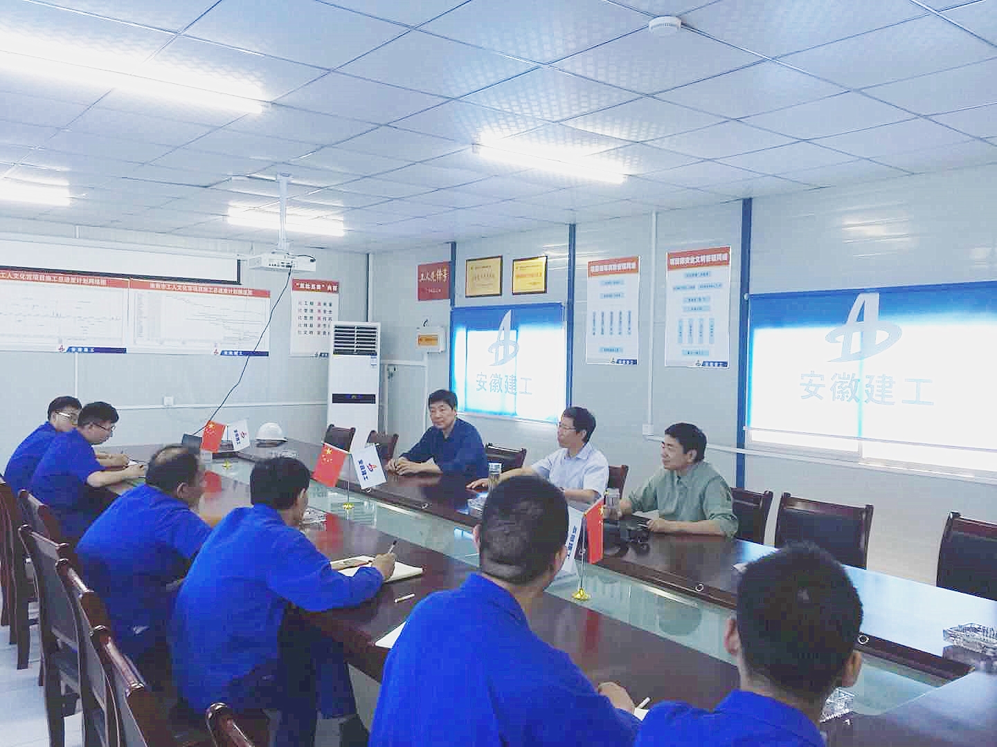 5月14日,安徽建工集團副總經(jīng)理王厚良在安建建設總經(jīng)理陳傳文、副總經(jīng)理程華旭的陪同下,赴淮南市工人文化宮項目調研指導項目管理、安全生產(chǎn)、項目信息化管理等工作,實(shí)地查看了施工現場(chǎng),并聽(tīng)取了公司關(guān)于即將開(kāi)工的淮南衛生學(xué)校新校區項目施工準備情況的匯報,文化宮項目管理人員參加了調研座談會(huì )。