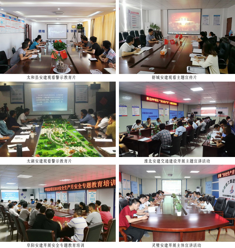 截至目前,安建投資“安全生產(chǎn)月”已按方案要求,完成了一、二階段的相關(guān)活動(dòng),各項目公司安全生產(chǎn)宣貫周、安全生產(chǎn)事故警示教育周活動(dòng)已相繼開(kāi)展,各項目深入宣貫黨的十九大精神和習近平總書(shū)記關(guān)于安全生產(chǎn)的新思想、新理論、新戰略,深入學(xué)習《安全生產(chǎn)法》、《安徽省安全生產(chǎn)條例》等法律法規及集團安全生產(chǎn)管理文件。針對公司2018年安全工作重點(diǎn),所屬各項目公司陸續開(kāi)展了安全生產(chǎn)攻堅行動(dòng),強化事故警示教育,開(kāi)展安全教育培訓,集中觀(guān)看了警示教育片和主題宣傳片。