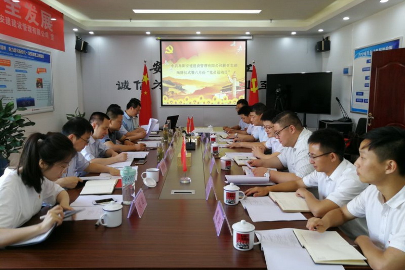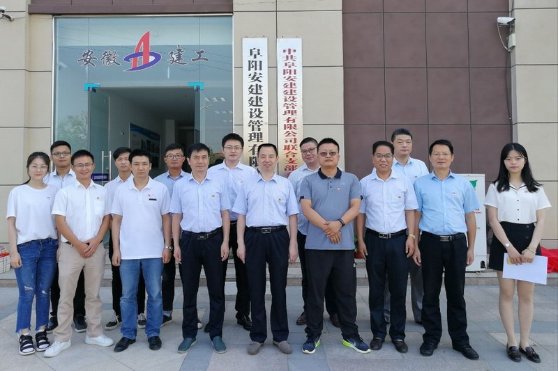 為進(jìn)一步整合PPP項目投資建設資源,增強組織活力和凝聚力,由投資主體安建投資公司與參建單位安徽安裝公司共同組建了阜陽(yáng)安建建設管理有限公司聯(lián)合黨支部。6月14日,該聯(lián)合黨支部舉行揭牌儀式,安徽投資黨總支書(shū)記余志剛,安徽安裝公司黨委書(shū)記胡六中,安建投資公司副總經(jīng)理朱友良,安徽安裝公司紀委書(shū)記李寬旭共同為聯(lián)合支部揭牌并為支部贈書(shū)。
