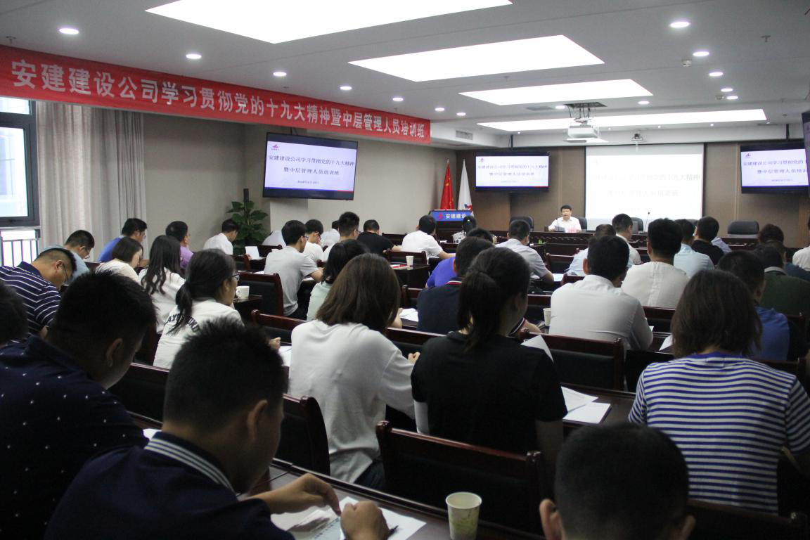 6月19日,安建建設公司在24樓會(huì )議室舉辦學(xué)習貫徹黨的十九大精神暨中層管理人員培訓班,公司黨委書(shū)記王可武作開(kāi)班動(dòng)員。公司領(lǐng)導班子成員、中層管理人員、各工管部、辦事處、項目部負責人、中層后備干部、統戰人士、組織人事部門(mén)、群團組織負責人及在肥黨員共計70余人參加培訓。